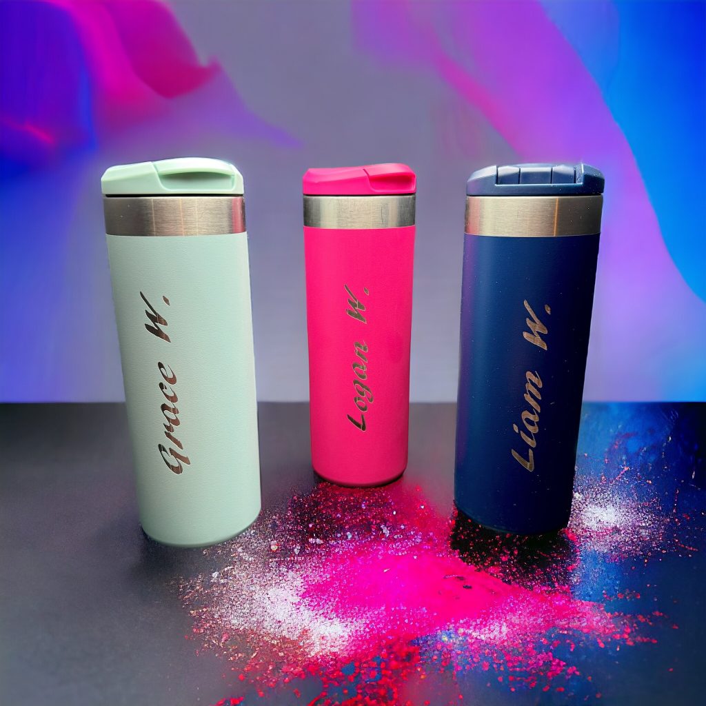 See our Laser cut/engraved wood, glass, acrylic and etched tumblers below